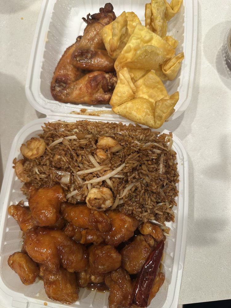Crab Rangoons , Chicken Wings , Orange Flavor Chicken , Pork Fried Rice